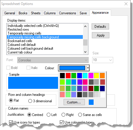- Select Temporarily missing cells to change the text colour or Temporarily missing cells background to change the background cell colour.