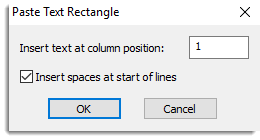 This menu is particularly useful if used in conjunction with the Edit | Copy Special | Rectangle menu item which copies a rectangle of text onto the Clipboard.