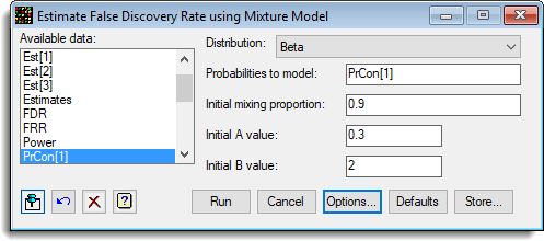 - False Discovery Rate using Mixture Model Store Options