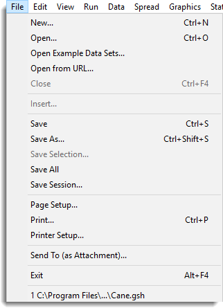Lists files most recently opened. Selecting a file from this list will raise the associated window above any others, reopening the file if necessary. By default, only the four most recent files are displayed, but this can be modified using the Tools | Options | General tab.