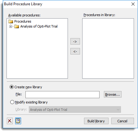 Select this option if you want to create a new procedure library. Specify the name of the file including the full path within the space provided. Alternatively, you can locate a filename by clicking Browse.
