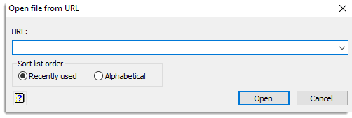 This specifies a URL for a file to open. You can either type in the name of a URL, paste one from the clipboard (Ctrl+V) or choose from the dropdown list of the 60 most recent URLs that have been successfully used.