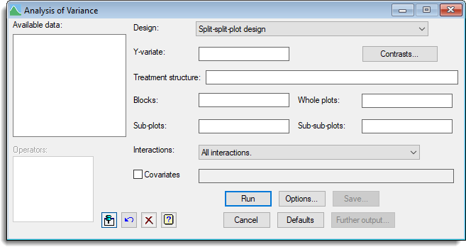 The Split-split-plot design menu lets you analyse data from split-split-plot designs.