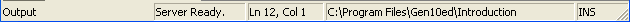 Only displayed when the active window is a text window. It indicates the current line and column position in the window. You can jump to a specific line/row by selecting Edit | Go To and entering a value.