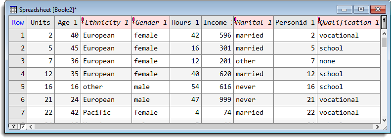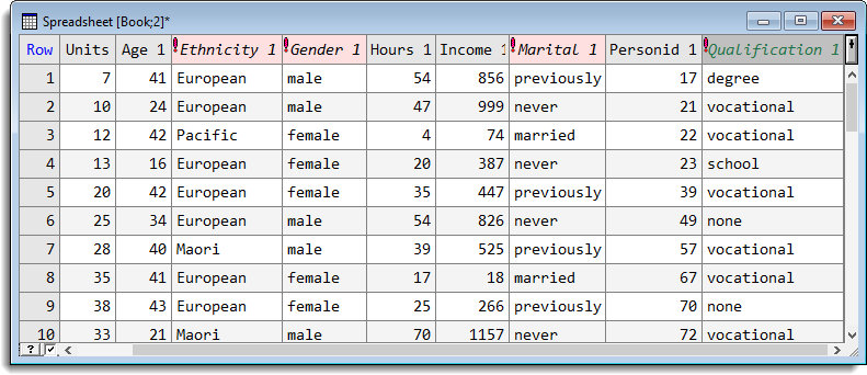 Note: if you have opened the NZ Income Survey data-set, close this spreadsheet and clear the data by selecting Data | Clear All Data from the menu (shortcut Ctrl+D).