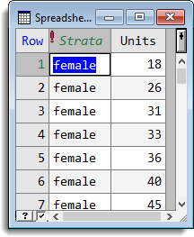 - Double-click Gender from the Available data list to enter it in the Factor for strata field.