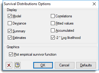 | Plot empirical survivor function | Plot of the empirical survivor functions against the estimate produced by the model. |