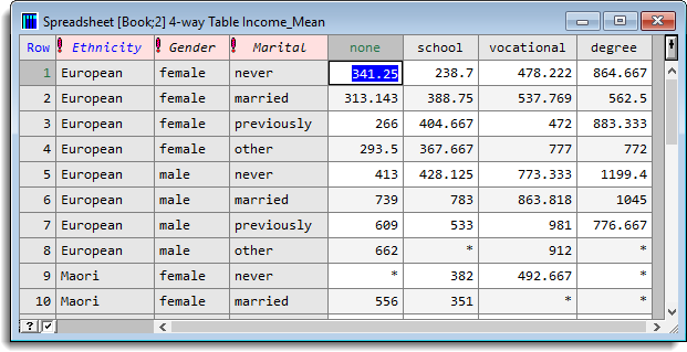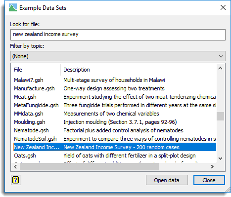 These examples use the Genstat spreadsheet file ‘New Zealand Income Survey.gsh‘ in the Data folder in the Genstat directory.
