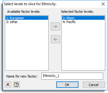 - Highlight the Maori and Pacific levels then move them across to Selected factor levels by clicking