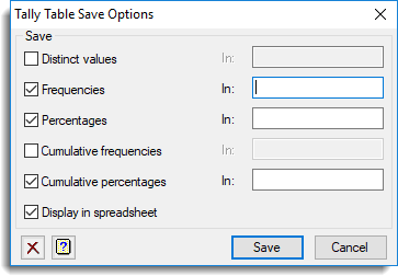 | Distinct values | Variate or text | The distinct groups formed for the table |